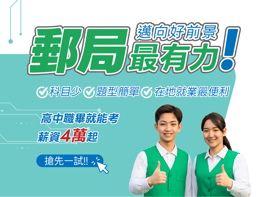| 共同科目 | 1.國文(含作文與公文寫作) 2.英文(含中翻英、英翻中及閱讀測驗) 3.郵政三法(含郵政法、郵政儲金匯兌法、簡易人壽保險法)及金融科技知識(註) |