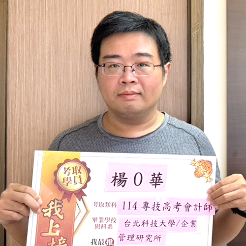 高會與成會的蕭靖老師(蕭鋼柱)教學方式非常實用,能迅速讓我掌握題型的解題邏輯,不僅加快了答題速度,也在複雜題目中培養出判斷重點的能力,對考試非常有幫助。