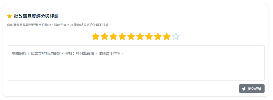 ※AI批改需一點時間進行分析批閱,請同學耐心等候,如遇AI溝通無回應,請重新提交送出即可。
